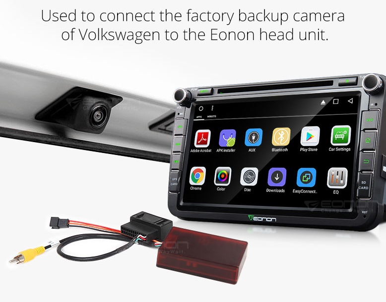 K radiu je pripojený canbus adapter ktorý len nasuniete do konektoru od kamery a dekoder sa postará aby sa obraz preniesol na displej vášho auta.