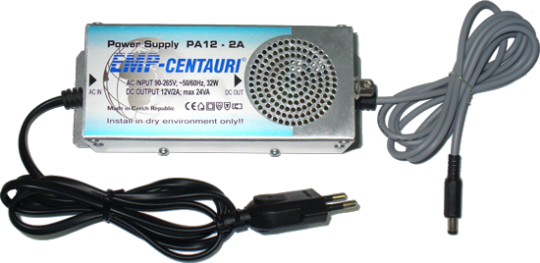 Prepínateľný aktívny/pasívny terestriálny vstup. 12V DC napájanie pre voliteľný terestriálny predzosilňovač. Externý napájací zdroj (súčasť balenia).