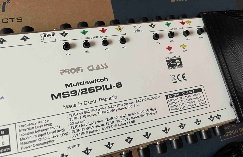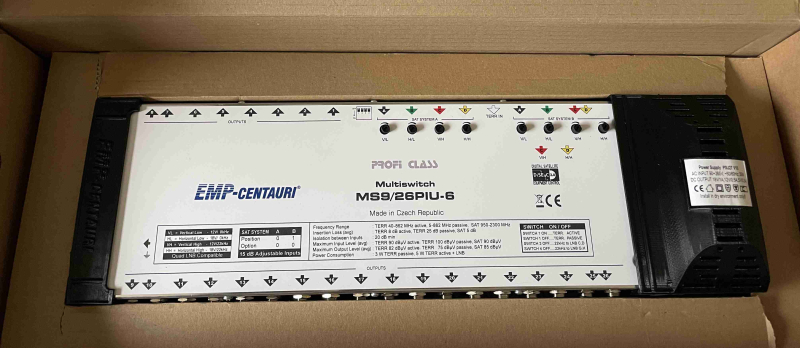 Multiprepínač EMP-Centauri MS 9/26 PIU-6 je určený pre distribúciu pozemných a satelitných signálov zo 2 satelitné pozicie a až 29 účastníkov - prijímačov.