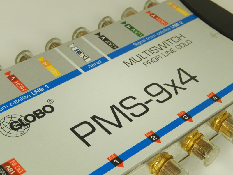 GLOBO multiprepínač Globo 9-4 HD umožňuje rozdelenie signálu z dvoch satelitných pozícii a DVB-T na 4 užívateľov.cena s adapterom.