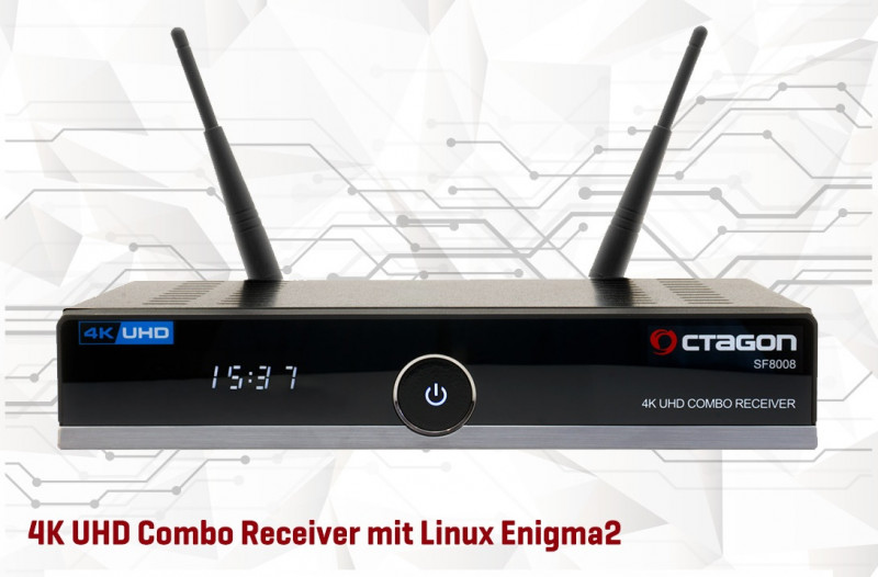 Octagon hrdo prezentuje druhý 4K UHD prijímač SF8008. Vybavený je Octagon SF8008 s 2 možnosťami tunera. Tunery sú vybavené novými štandardnými DVB-S2x, DVB-C a DVB-T2 HD. Okrem toho port Octagon SF8008 USB 3.0,