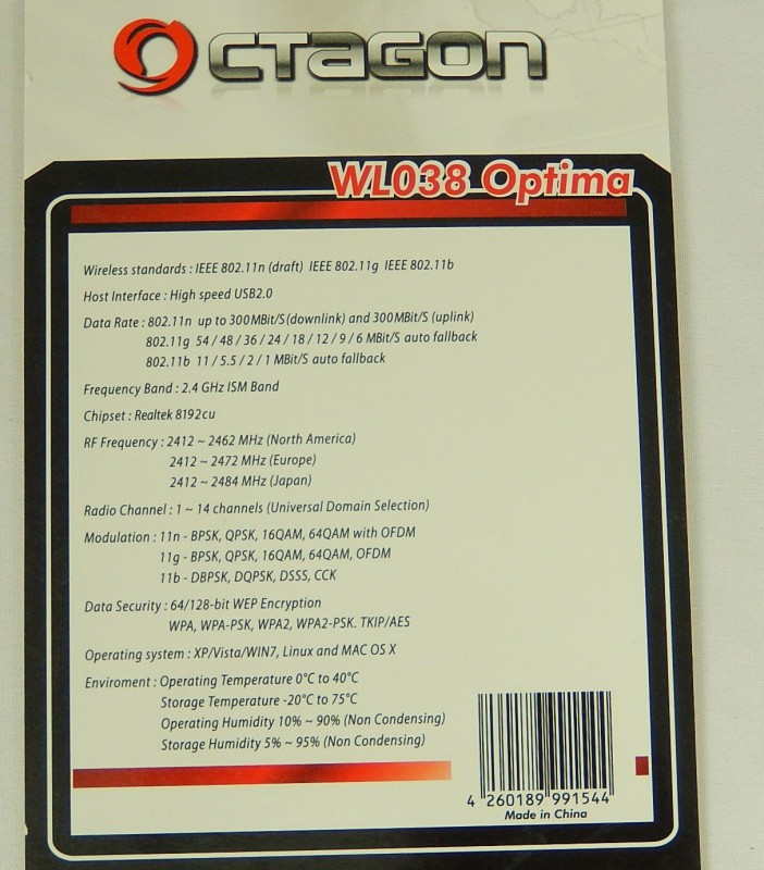 - OCTAGON WL038 OPTIMA WLAN USB STICK 300MBIT/S