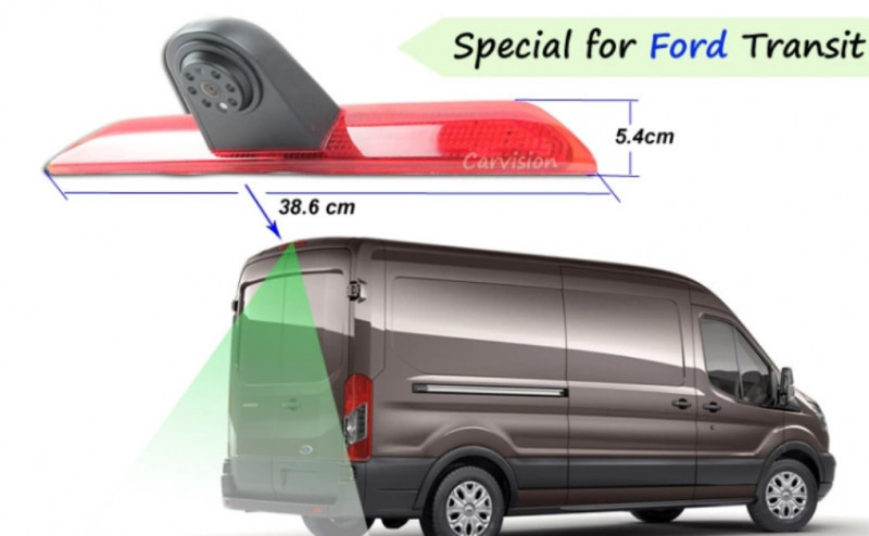 Parkovacia kamera pre Ford Transit - 2014 2017 - 4 generacia v treťom brzdnom svetle je vybavená širokouhlou kamerou s velkym uhlom 170° a nočným videním. Kamera nainštalujete na miesto tretieho brzdového svetla s pohľadom dolu a je možné ju po inštalácii natáčiť podľa potreby.