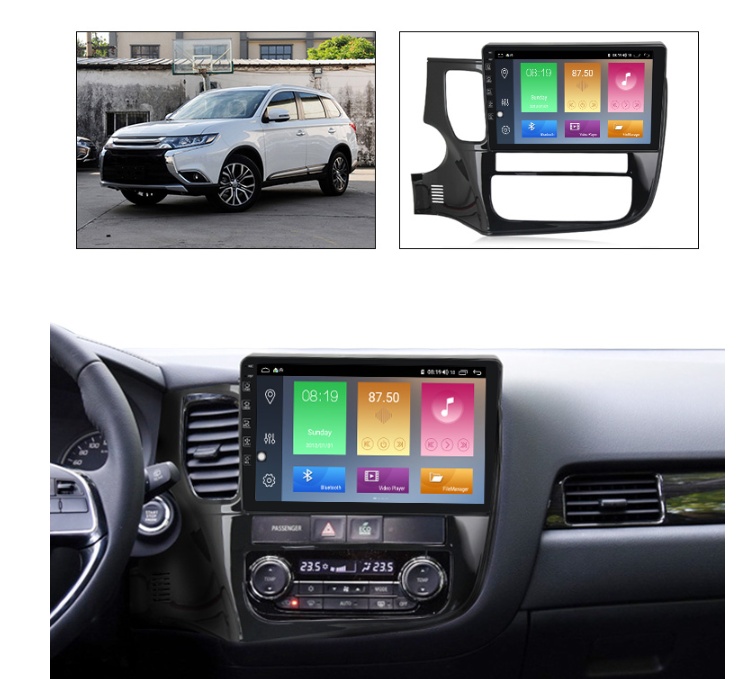 Plastový rámik na multimediálne radio Mitsubishi Outlander 2012-2018 spolu s komplet káblami pre inštaláciu radia spolu s podporou ovladania volantu.Dokupit len 9" LCD panel.