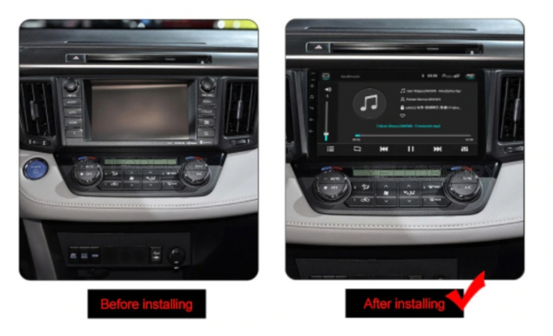 Plastový rámik na multimediálne radio Toyota RAV4 Rav 4 model 2013-2018 spolu s komplet káblami pre inštaláciu radia spolu s podporou ovladania volantu.Dokupit len 8" LCD panel.