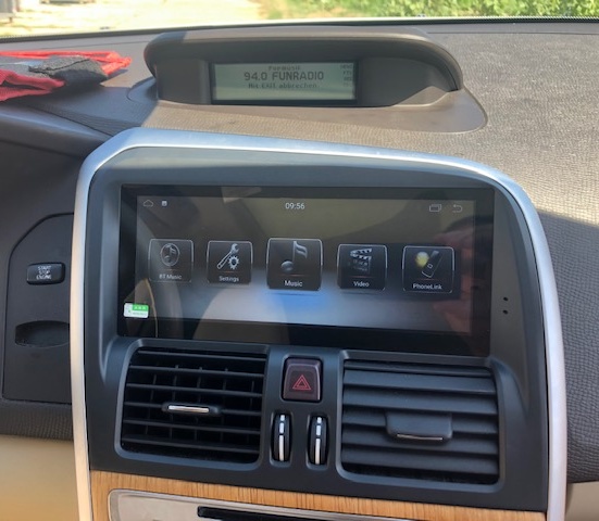 GPS Android 9.0 System Quad core procesor pre Volvo XC60 rok výroby 2009-12 s velkým 8,8" LCD s vysokym rozlíšenim 1100 x 480 , povodné radio zostava meni sa len velky LCD s Android systemom ktory podporuje pripojenie cuvacej kamery, zabudovana navigacia GPS, Bluetooth , Wifi a 2x USB.