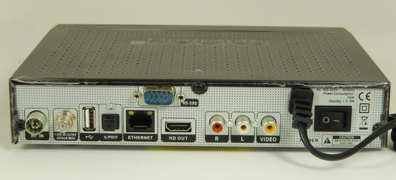 - Connection ports: 2x USB, HDMI, RCA, LNB IN, ANT IN, SPDIF, LAN, RS232