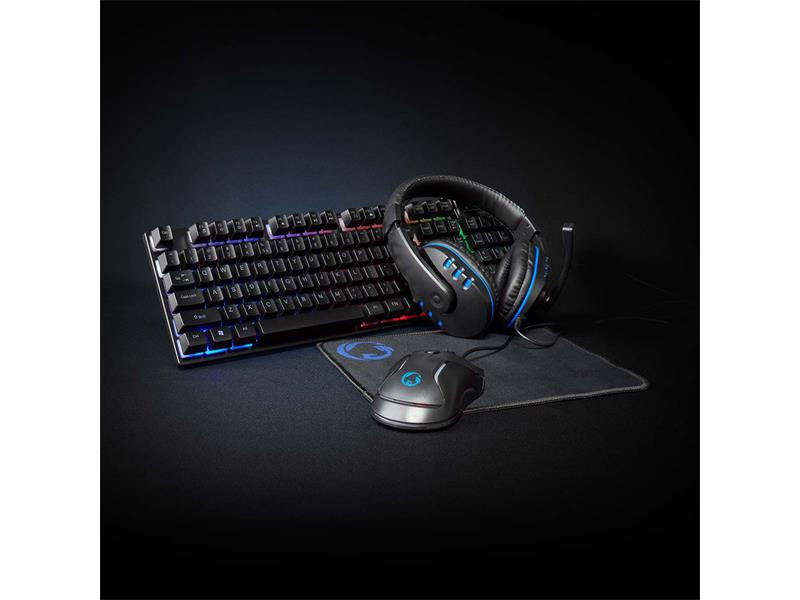 Táto dokonalá Nedis herná štartovacia sada 5 v 1 dokáže presvetliť každý herný zážitok. Sada obsahuje klávesnicu a myš s LED podsvietením, podložku pod myš, náhlavnú súpravu a adaptérový kábel náhlavnej súpravy. Slúchadlá, klávesnica a myš je možné tiež použiť s niekoľkými hernými konzolami pre čo najefektívnejší herný zážitok.