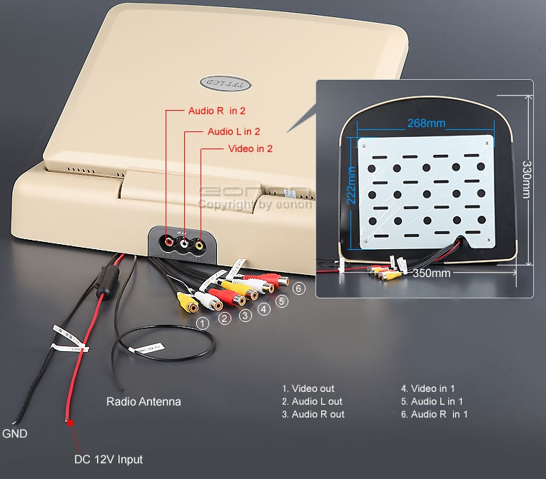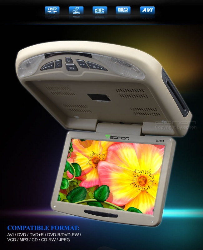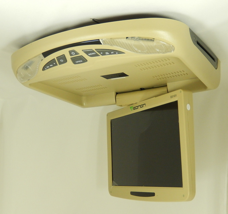 Stropný monitor 12" EONON 3101 -Bežovej farby - výklopný stropný monitor s vysokym rozlišenim 1280x 800 HD EONON zo zabudovaným DVD prehrávačom+USB+SD karta. Zariadenie má zabudovaný slot na USB a SD karty a 2x reproduktory možnost pripojit Wireles Sluchadla.