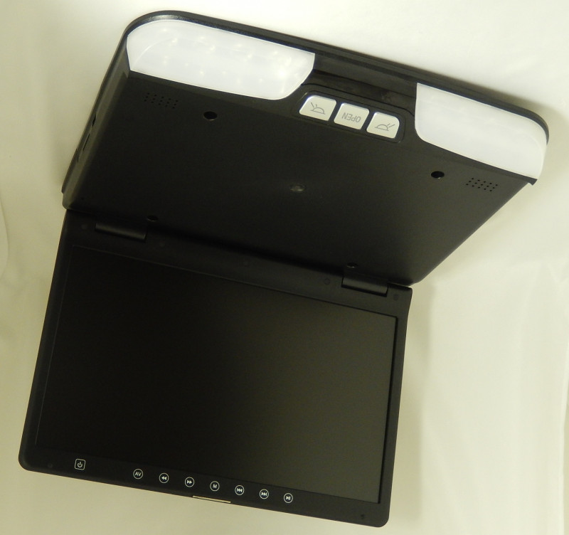 15,6“ výklopný stropný monitor s vysokym rozlišenim 1280x 800 HD zo zabudovaným DVD prehrávačom+USB+SD karta. Zariadenie má zabudovaný slot na USB a SD,MMC karty a možnost pripojit Wireles Sluchadla .