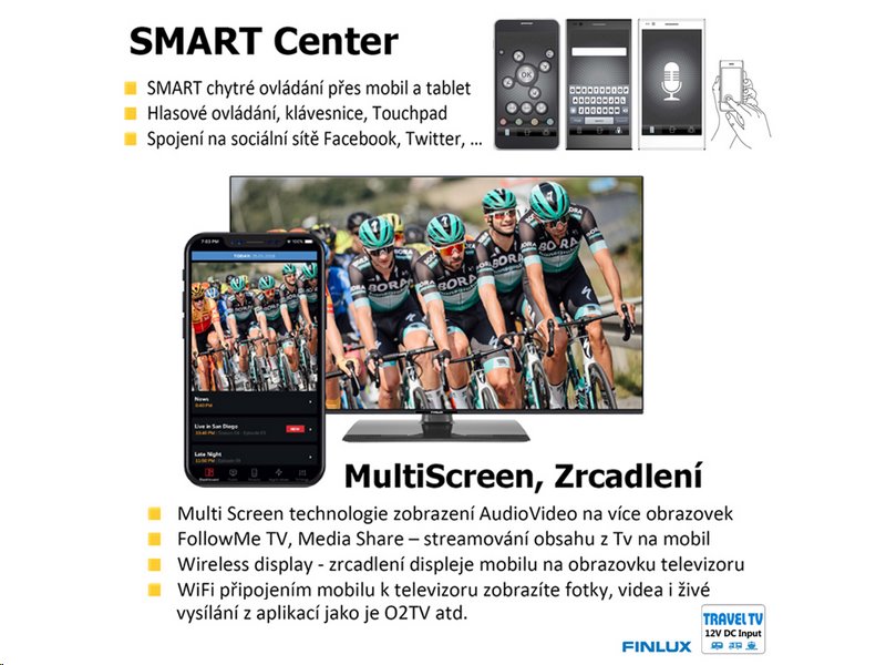 Obsah dodávky Televízor, ovládač s batériami, návod, napájací adaptér 230VAC/12VDC.