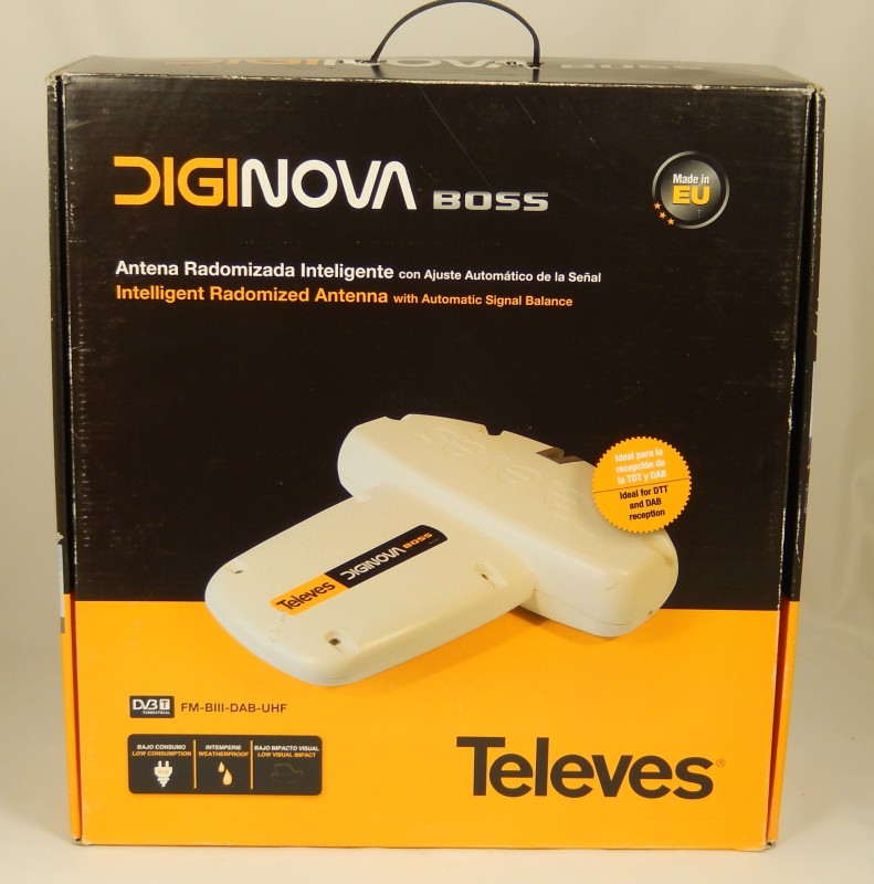 Vonkajšia DVB-T antena Televes DigiNova Boss s LTE Filterom - Inteligentná anténa BOSS, chránená plastovým radom ABS, ktorá eliminuje účinky signálov LTE a poskytuje najlepšiu kvalitu vysielania DTT. Vzhľadom na svoju veľkosť, diskrétnosť a výkon je táto anténa ideálna pre fasády, balkóny, rodinné domy atď.