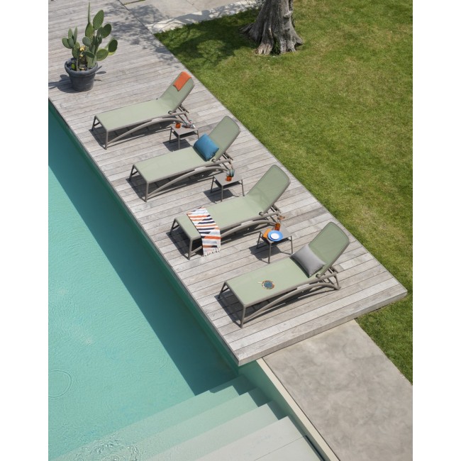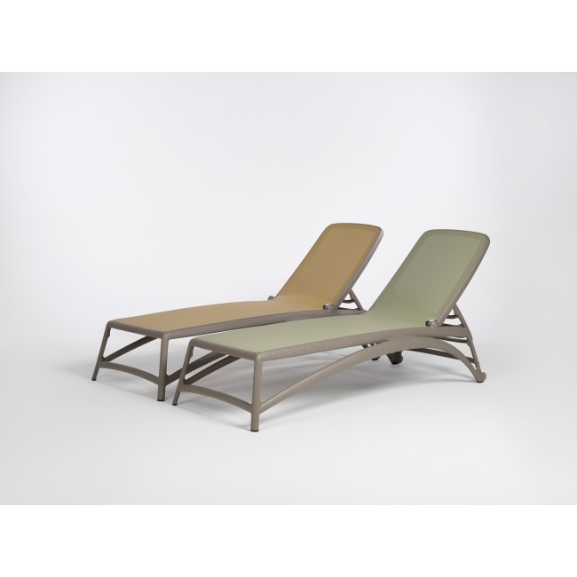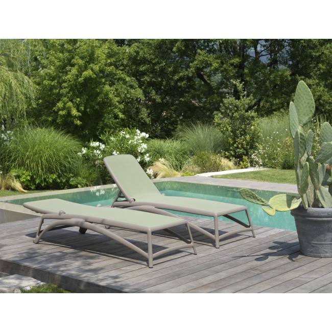 Novo vo farebnom prevedení poťahov Agave a Deserto (piesková) . Lehátko, ktoré je určené pre zariadenia s prístupom verejnosti. Pevný rám z polypropylénového kompozitu spevneného skleným vláknom. Transpiračná textília zamedzí pocitu "studených plaviek" - vlhkosť zmizne vďaka mikrootvorom, ktoré zaisťujú odparovanie vody. Textília je uchytená po celom obvode profilom z pružného plastu odolného proti vytrhnutiu. Textília je veľmi pohodlná, pružná a zároveň pevná, nepotrebujete polster. Naozajstný nábytok na vonkajšie využitie s prídavkom UV protektorov a rozmerových stabilizátorov, ktorý vydrží náročné zaťaženie pri každodennom využívaní verejnosťou. Všetky diely, ktoré sú určené na polohovanie, sú vyrobené zo spevneného materiálu. Kruhový profil kostry zaisťuje vysokú pevnosť celého rámu. Pre náročné prevádzky - kúpaliská, wellness centrá, rekreačné a bazénové zóny.