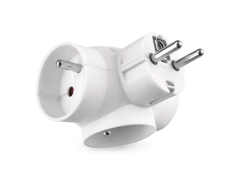Rozbočovacia zásuvka 3×, guľatá, biela (Adaptor trojnásobný rozbočovací.).