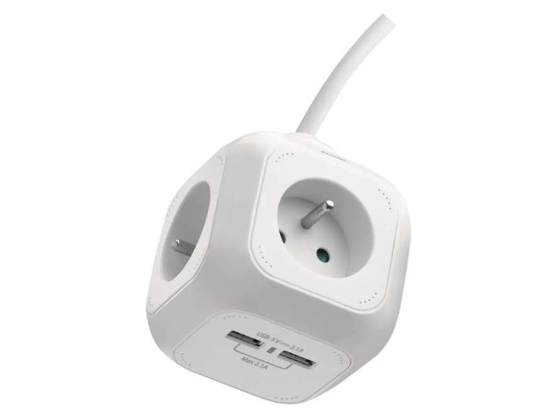 Predlžovací kábel - kocka 1,9 m / 4 zásuvky / biely / PVC / s USB / 1 mm2. Ideálne a funkčné riešenie, kompaktnosť. USB výstup.