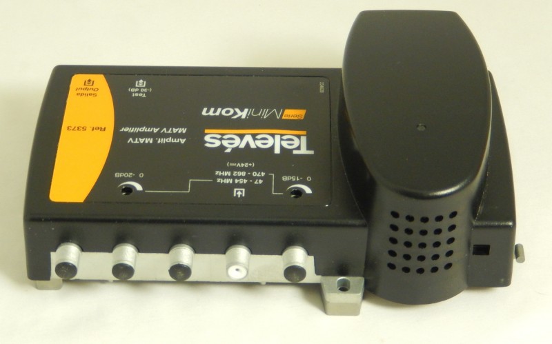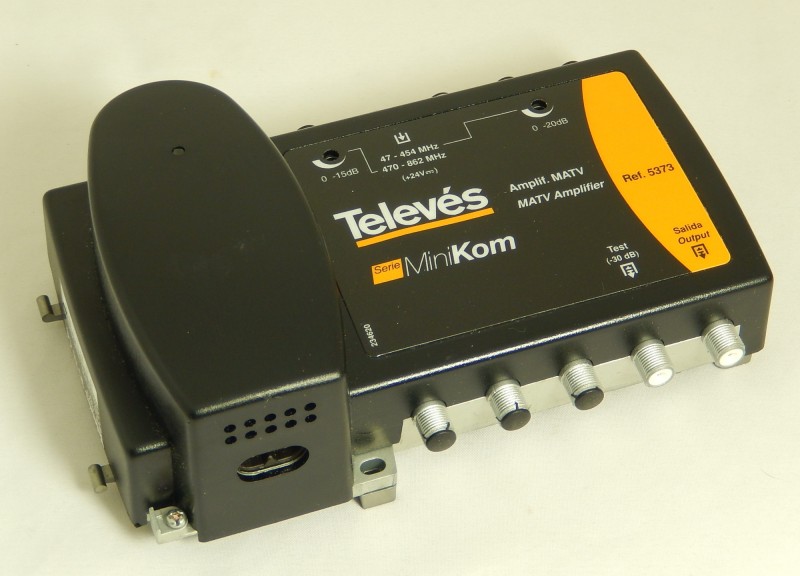 TELEVES 5373 je veľmi kvalitný a značkový domový zosilňovač, ktorý je vybavený jedným vstupom v rozsahu 47 – 862 MHz a jedným výstupom. Tento zosilňovač je opatrený vlastným zdrojom ( 230V ). Vstup a výstupy domového zosilňovača Televes 5373 sú pripojiteľné na F konektory. K tomuto zosilňovaču je možné pripojiť predzosilňovače TELEVES 5050, alebo 5550 do UHF vstupu s inteligentným napájaním 24V/60mA, ktoré je automaticky spínateľné.